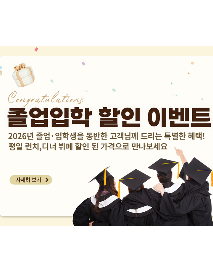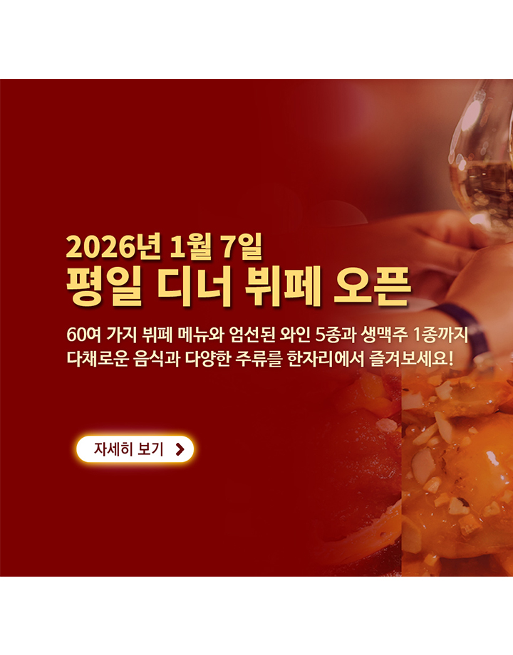 3층 P&J레스토랑과 더불어 1층 테이스티로드에서 다양한 요리와 음료를 즐길 수 있으며